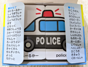 動物や乗物のなまえも書いてあるので、名前と形を一致させる、形だけではない認識面の向上にもつながると思います☆