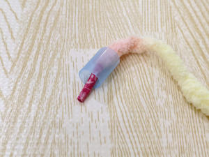 次に、ひもを適当な長さに切り、先端をマスキングテープで巻きます。