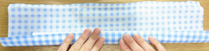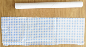 ①サランラップの芯と、それよりも少し長い布を用意します。