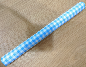 サランラップの使い終わった棒も、見つけてガジガジしていたので、かじっても大丈夫なように布を巻きました。