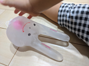 最初は固い感触だったうさぎ氷が、だんだん氷が解けてくるとぶよぶよになってきたり、遊んでいるうちに袋が破けて水がチョロチョローっと出てきたり、いろんな変化が楽しめます。