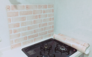 レンガ調の場合は模様が縦になってしまうので半分ずつ貼りましたが、2枚目の壁紙を貼る時に模様を合わせればつなぎ目がわからないくらいぴったり貼れました。